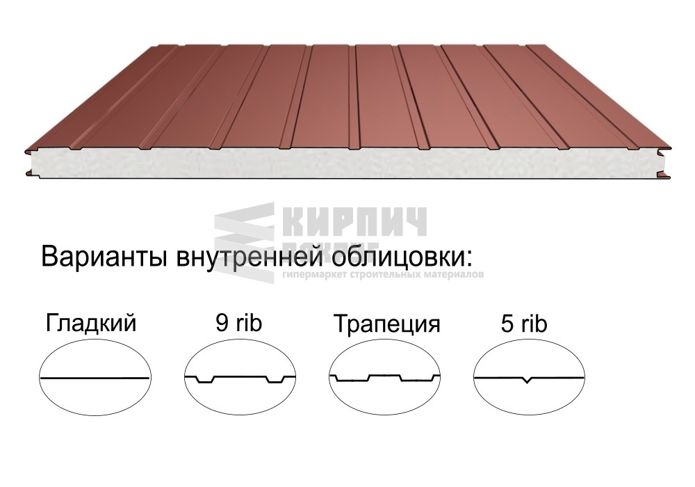 Строительный материал, имеющий трёхслойную структуру, состоящую из двух листов металла и слоя утеплителя между ними.